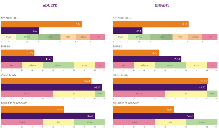 On observe une diminution du niveau de stress, une augmentation du niveau d’énergie, et une augmentation de l’équilibre gauche/droite de la personne et de ses organes au niveau énergétique.